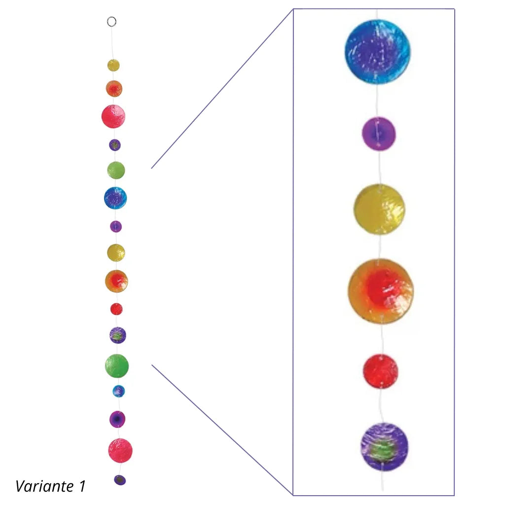 Diese Muschelketten zaubern mit ihren bunten Capiz-Muscheln ein wunderschönes Farbenspiel in dein Zuhause. Ob als Fensterdeko, Wandbehang oder auf dem Balkon – sie bringen Leichtigkeit, Farbe und einen Hauch maritimer Stimmung in jeden Raum.